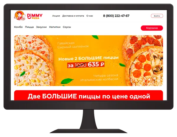 Сайт оптимизирован под мобильные устройства и планшеты (адаптивная верстка). На сайте реализован каталог предлагаемых пицц и продуктовых изделий с выбором торговых предложений (каждая пицца имеет свой набор характеристик, от которых зависит цена). На сайте реализован функционал корзины с возможностью удаления и добавления товара, а также функционал пересчета цены по промокоду и функционал подарков по акции. Также реализована возможность регистрации через СМС и личный кабинет с историей заказов и текущих статусов заказов. Реализован функционал статусов покупателей, от достижения статуса зависит размер скидки на оформляемый заказ.
